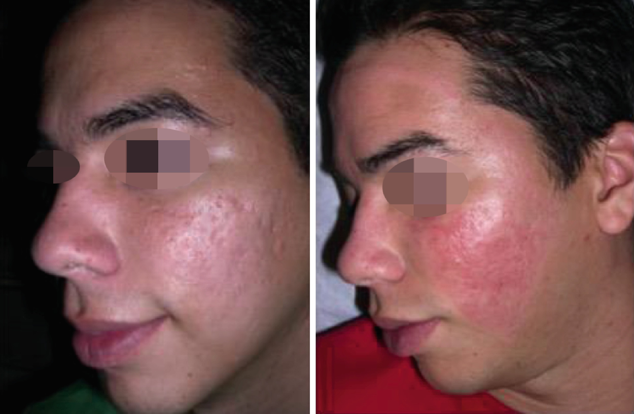 A patient with depressed acne scars before and six months after subcision. | Download Scientific Diagram